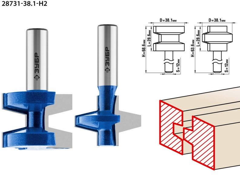 Набор фрез пазо-шиповых Зубр 28731-38.1-H2 38.1x28.6мм, хвостовик 12мм
