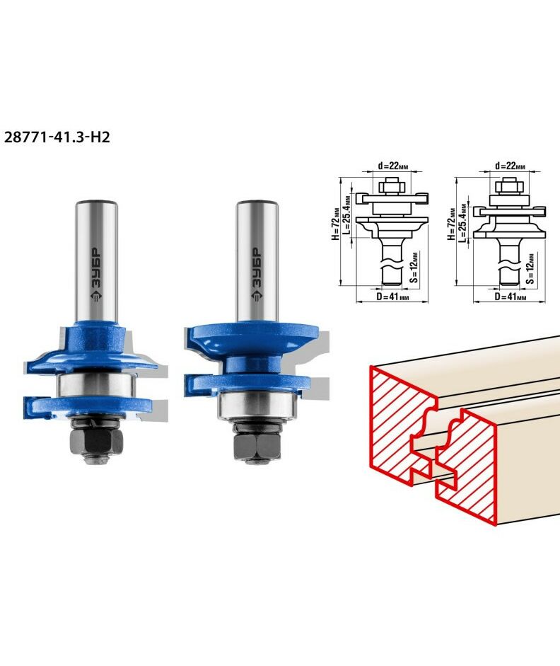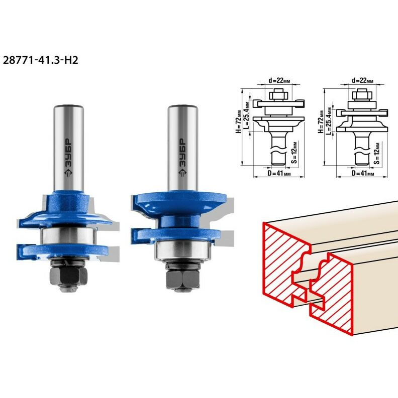 Набор фрез рамочных Зубр 28771-41.3-H2 №1, 41.3x23мм, хвостовик 12мм