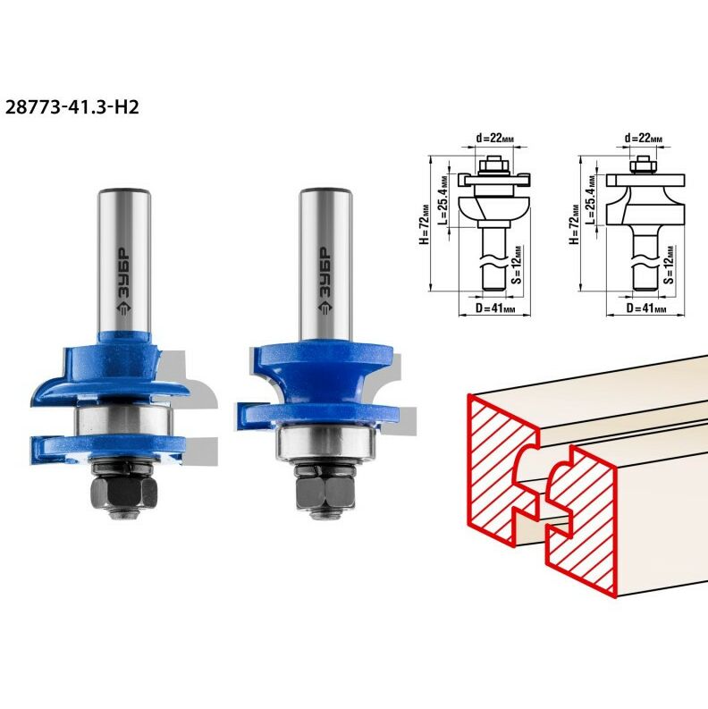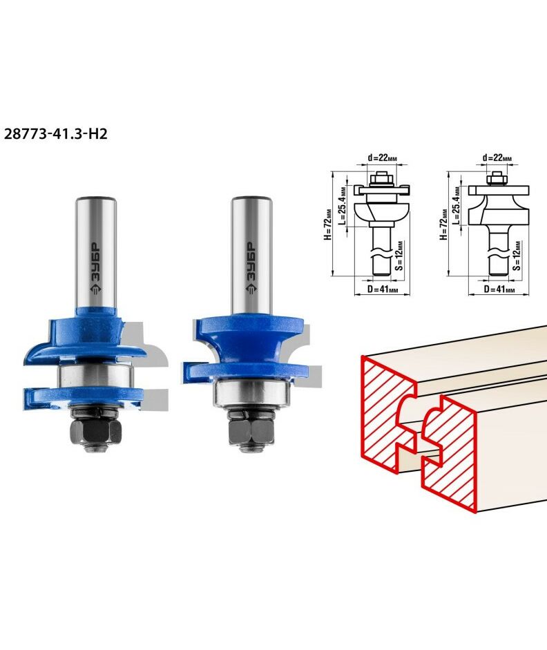Набор фрез рамочных Зубр 28773-41.3-H2 №3, 41.3x23мм, хвостовик 12мм