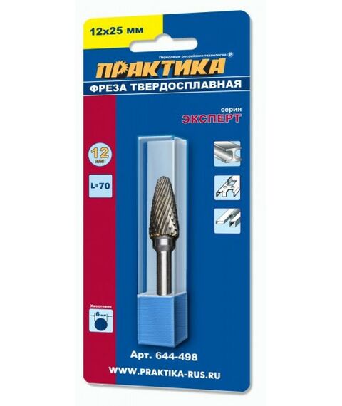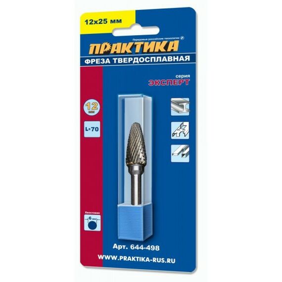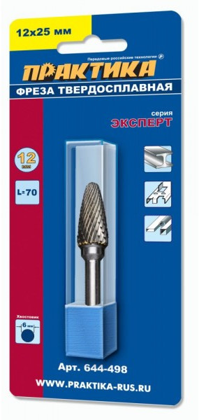 Фреза по металлу твердосплавная Практика 644-498 тип F параболическая, 12 х 25 мм, хвостовик 6 мм