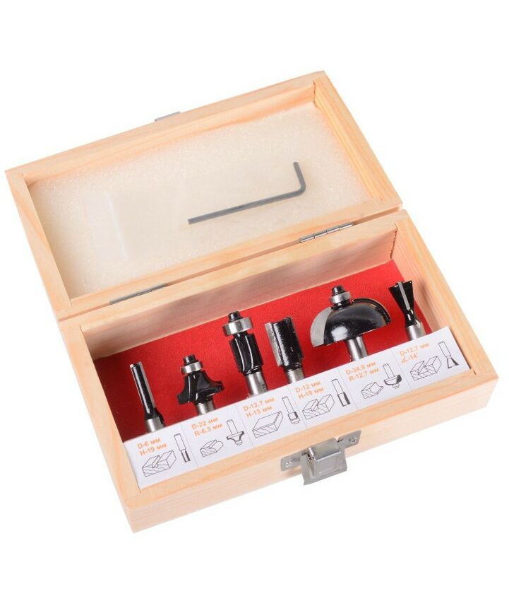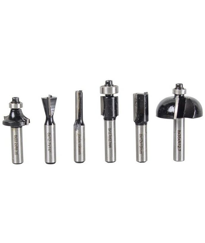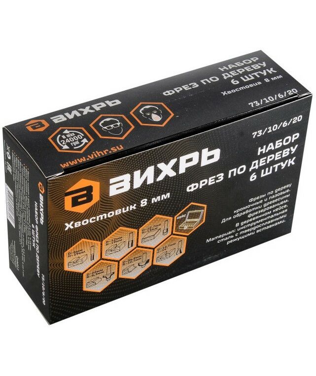- Набор фрез по дереву Вихрь 6шт с хвостовиком 8мм в кейсе для работы с фрезерными станками и ручными фрезерами.