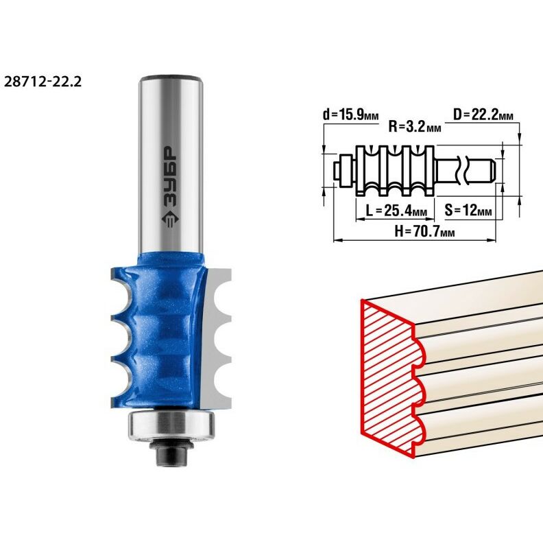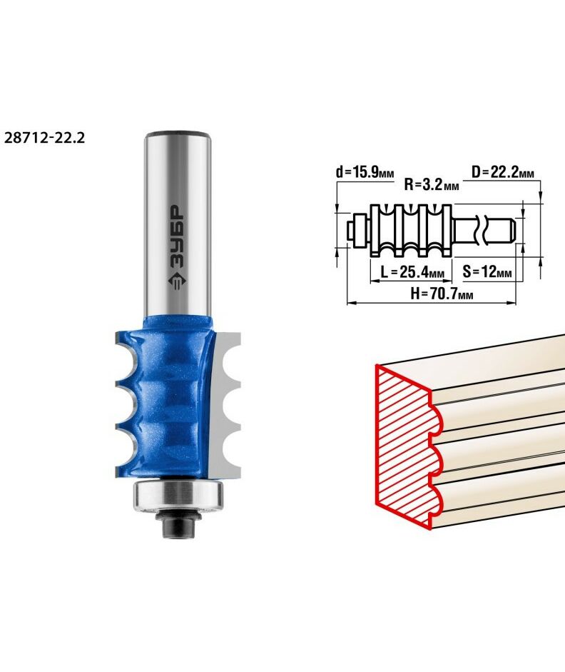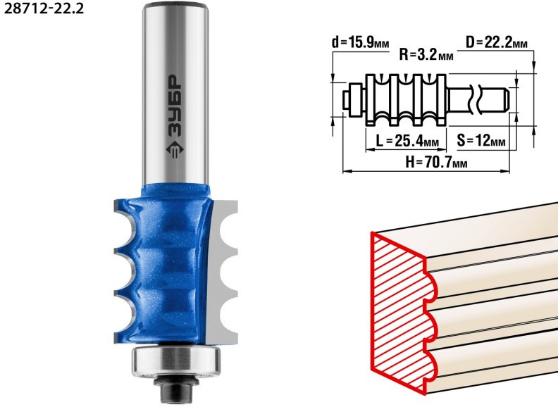 Фреза кромочная фигурная Зубр №1 22.2x26мм радиус 3мм [28712-22.2]