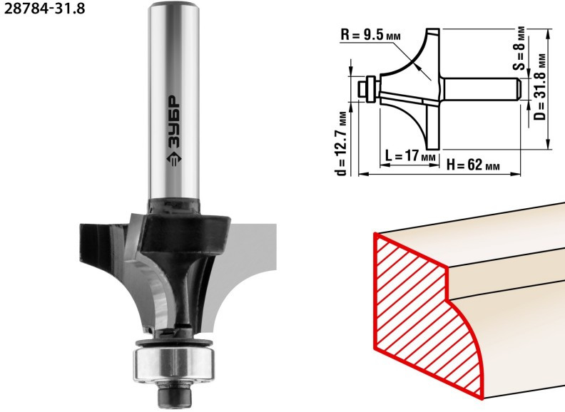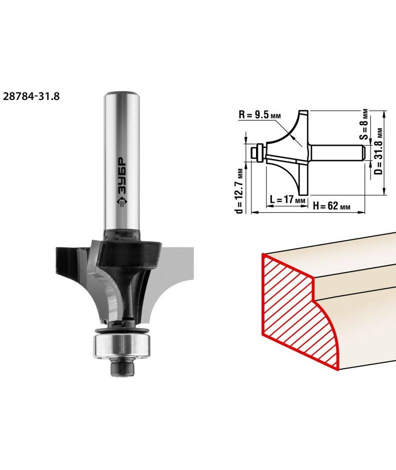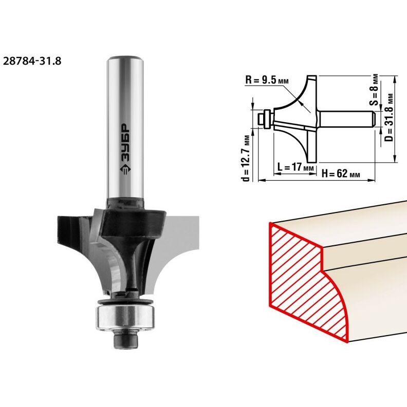 Фреза кромочная калевочная Зубр №1 31.8x17мм радиус 9.5мм [28784-31.8]