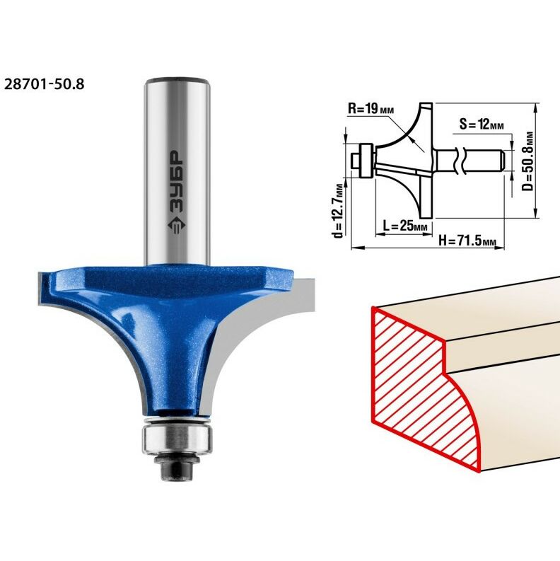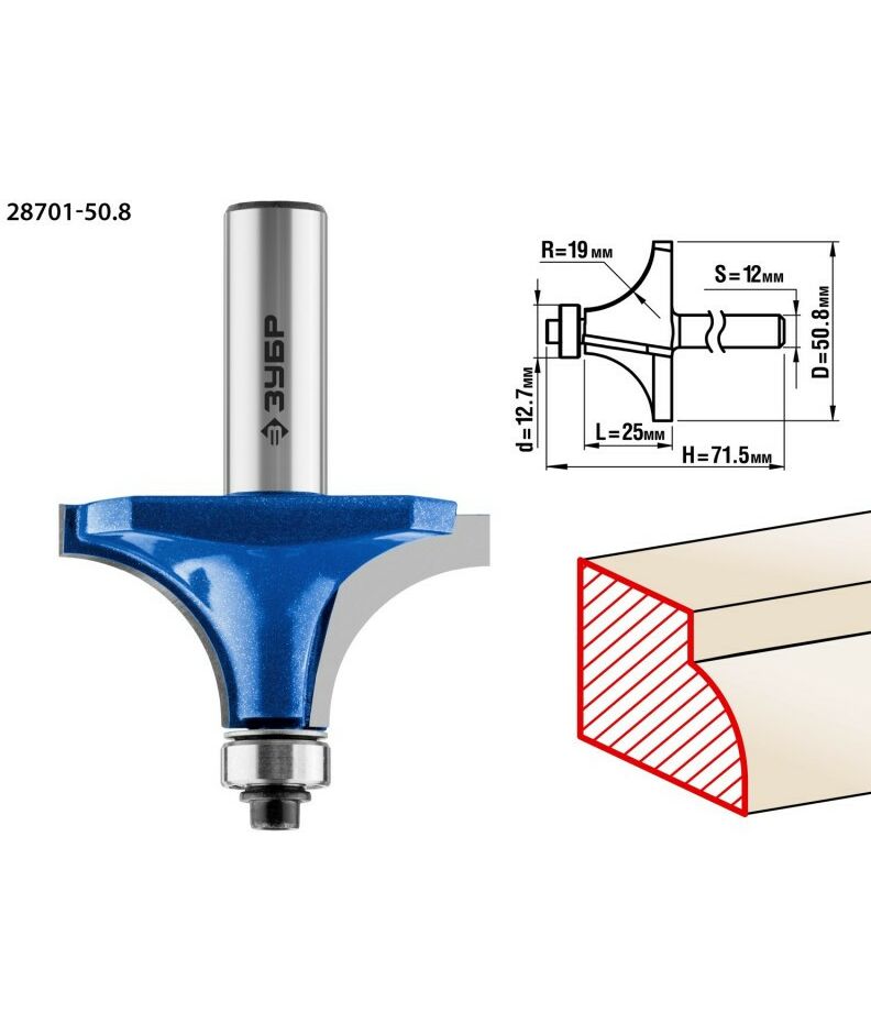 Фреза кромочная калевочная Зубр №1 50,8x25мм радиус 19мм [28701-50.8]