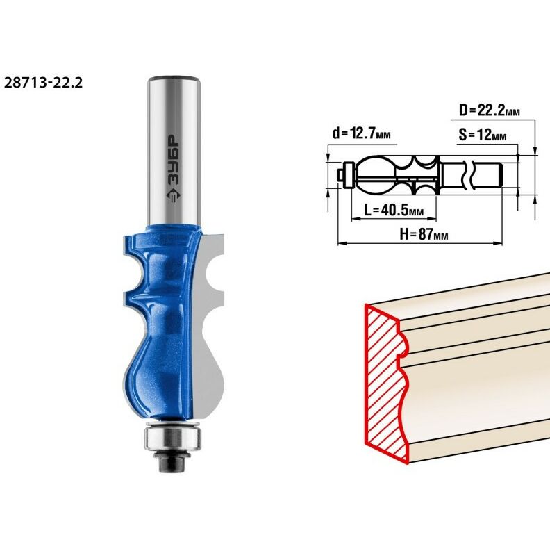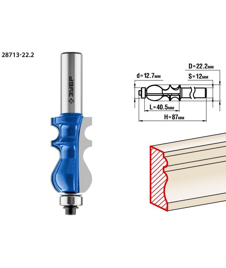 Фреза кромочная фигурная Зубр №2 22.2x41мм хвостовик 12мм [28713-22.2]