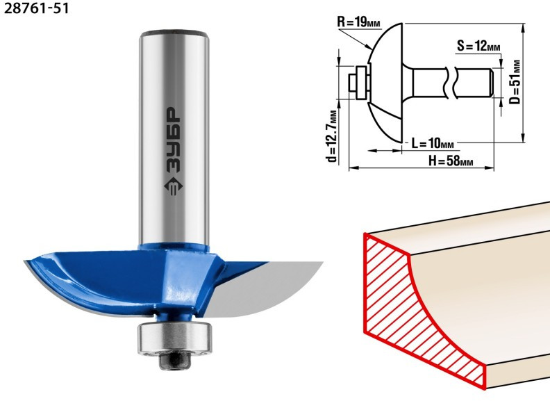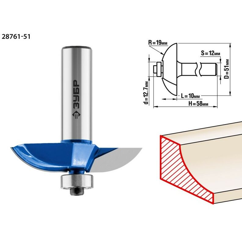 Фреза фигирейная Зубр №2 51x13мм радиус 19мм [28761-51]