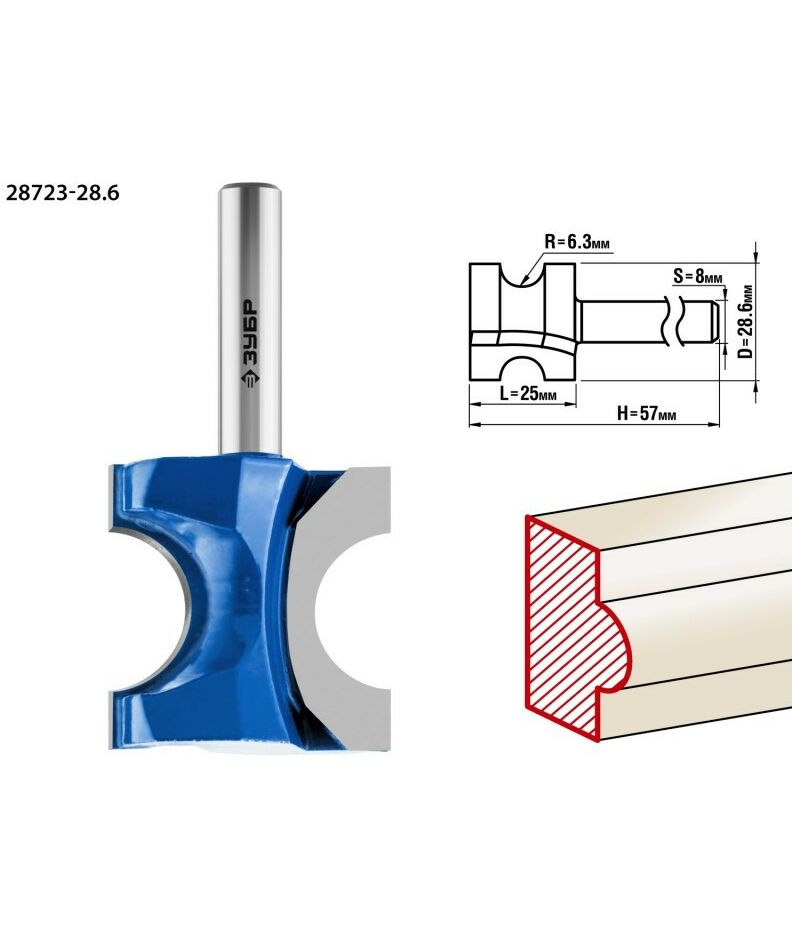 Фреза полустержневая Зубр 28.6x25мм радиус 6.3мм [28723-28.6]