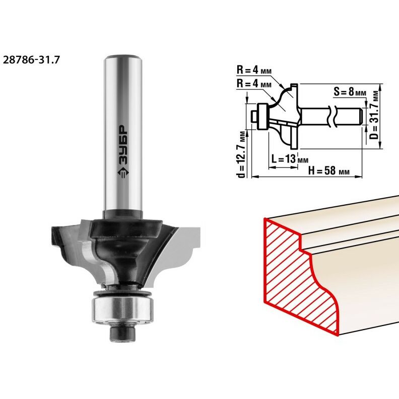 Фреза кромочная калевочная Зубр №3 31.7x13мм радиус 4мм [28786-31.7]