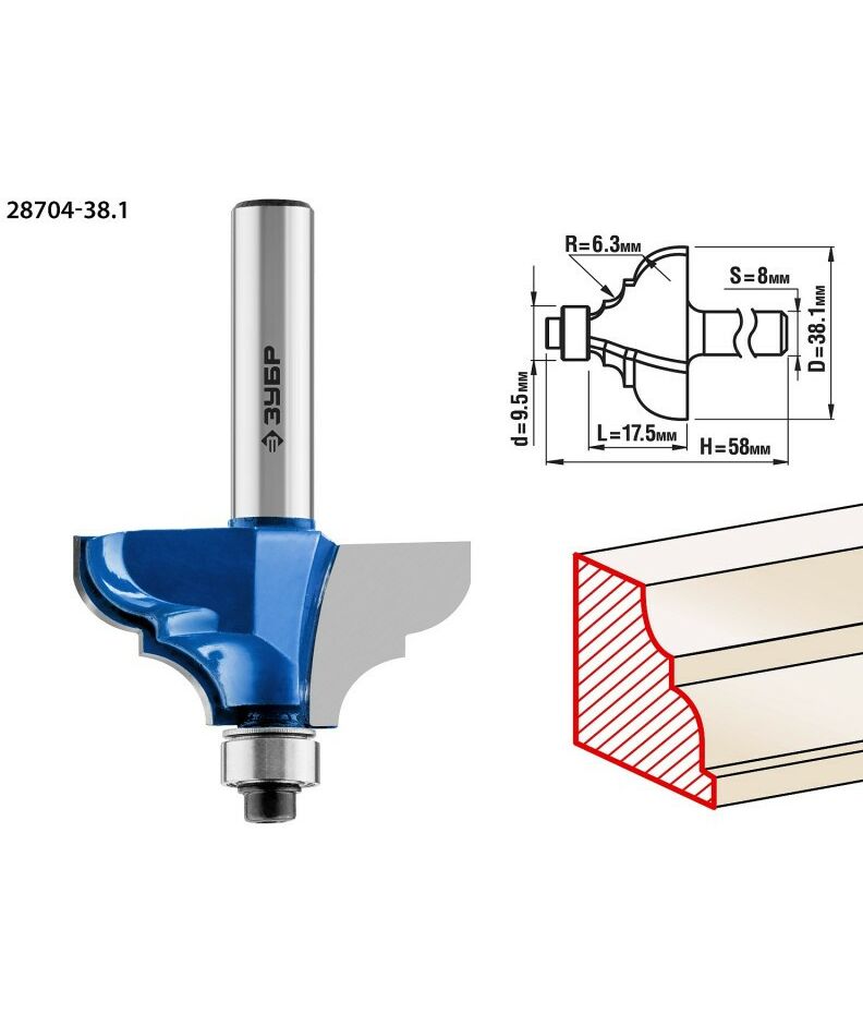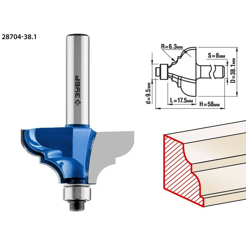 Фреза кромочная калевочная Зубр №3 38.1x17,5мм радиус 6.3мм [28704-38.1]