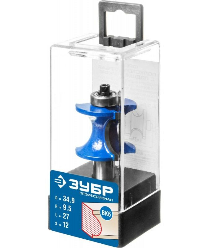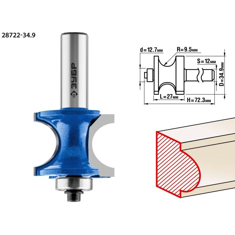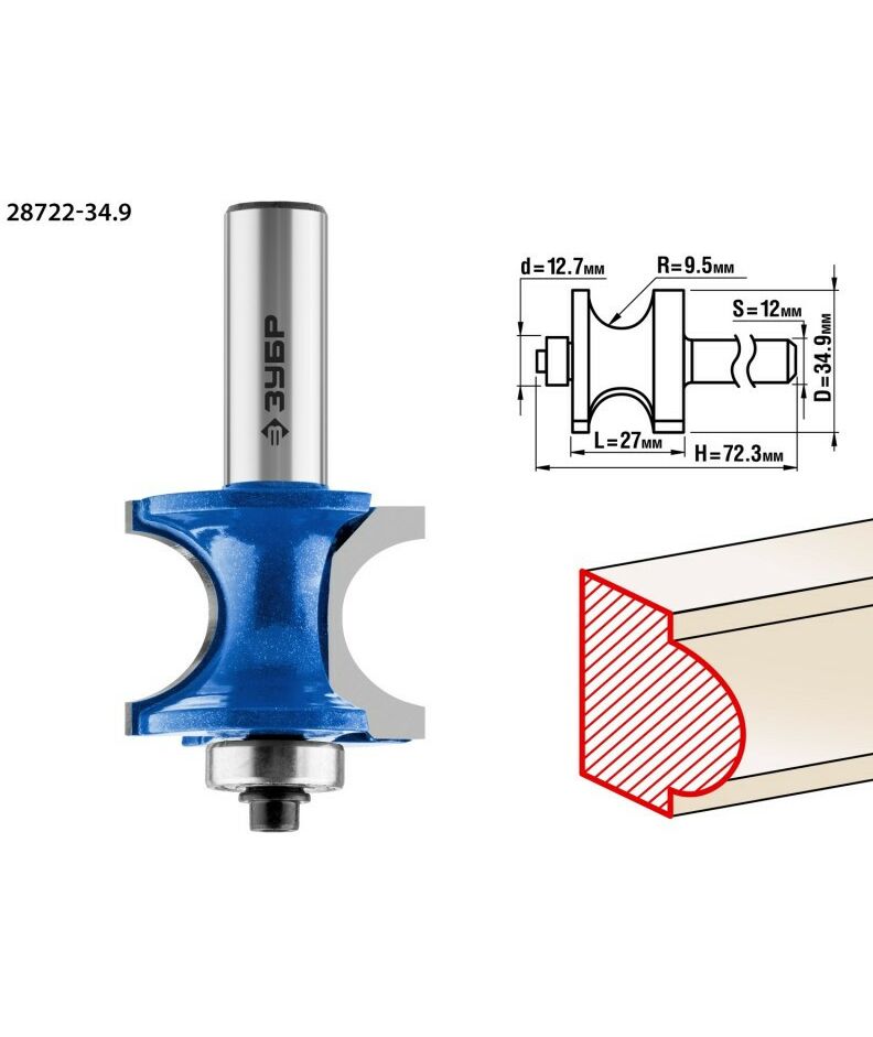 Фреза полустержневая с подшипником Зубр 34.9x29мм радиус 9.5мм [28722-34.9]