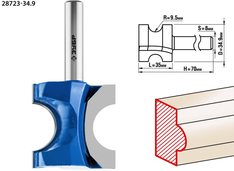 Фреза полустержневая Зубр 34.9x35мм радиус 9.5мм [28723-34.9]