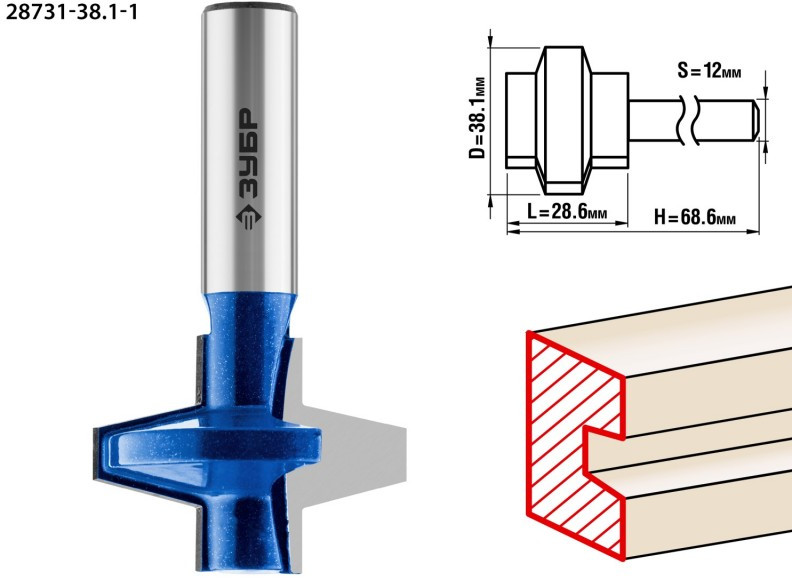 Фреза пазо-шиповая наборная Зубр 38.1x28.6мм хвостовик 12мм [28731-38.1-1]