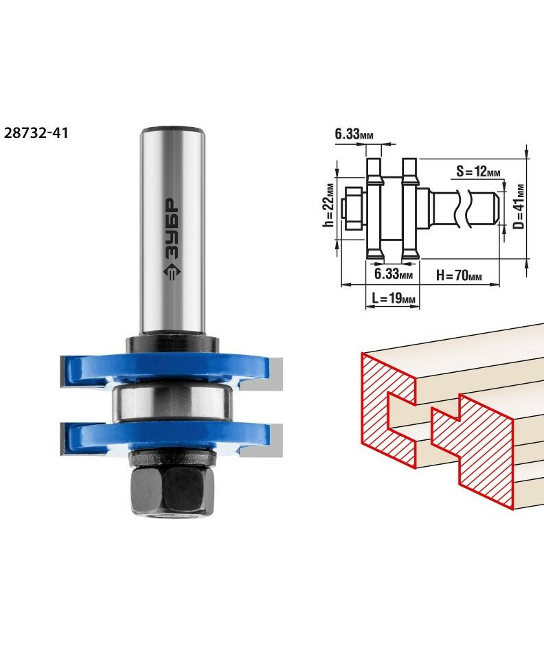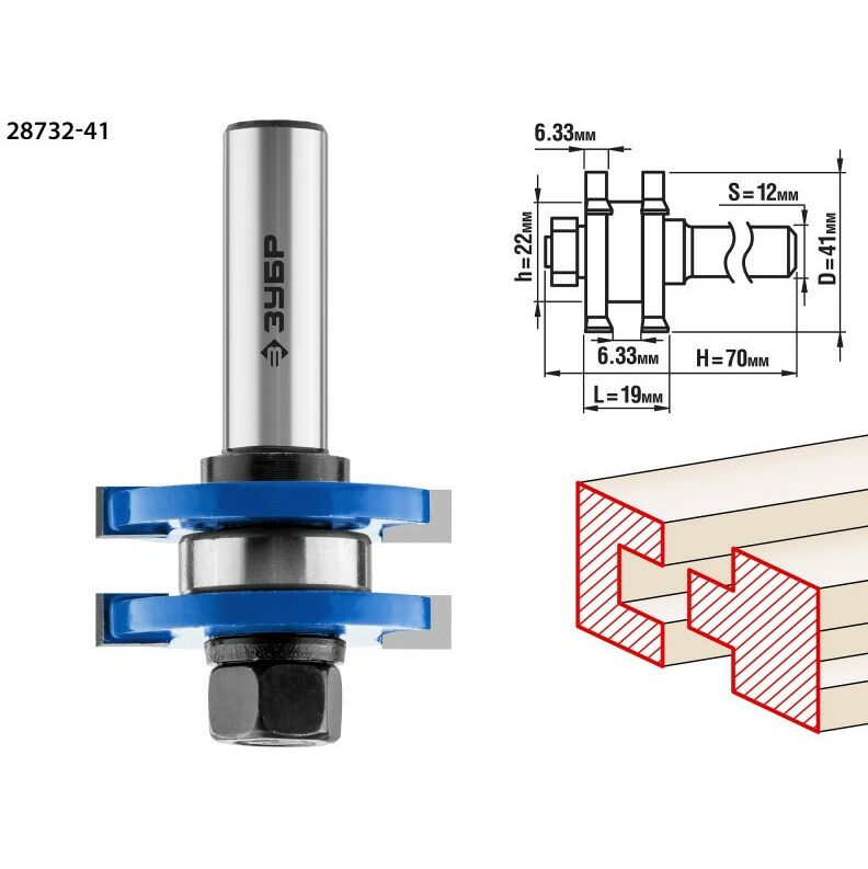 Фреза комбинированная пазо-шиповая Зубр 41x19мм хвостовик 12мм [28732-41]