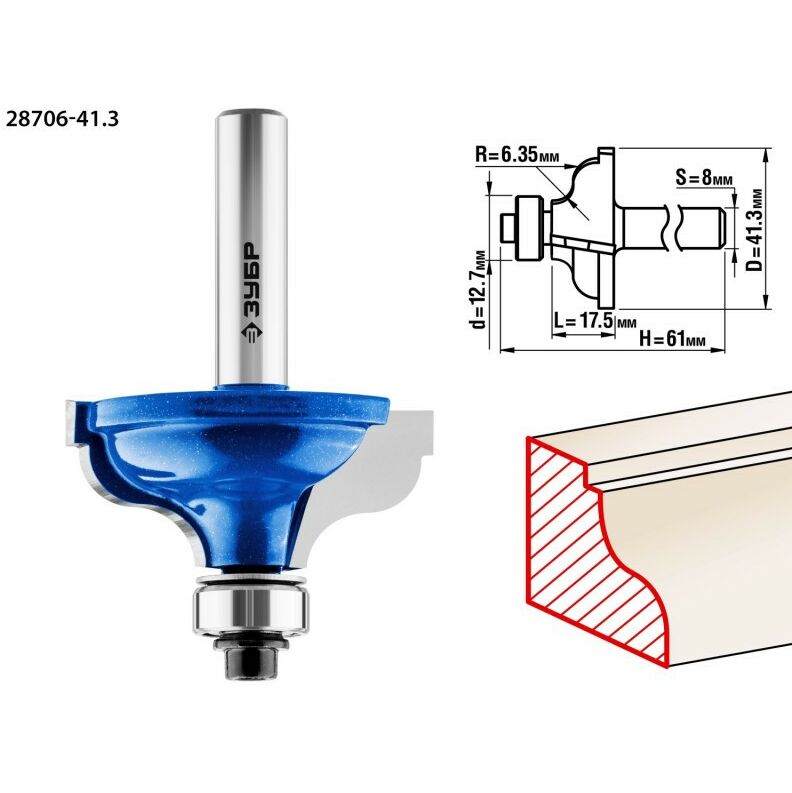 Фреза кромочная калевочная Зубр №5 41.3x18мм радиус 6.3мм [28706-41.3]