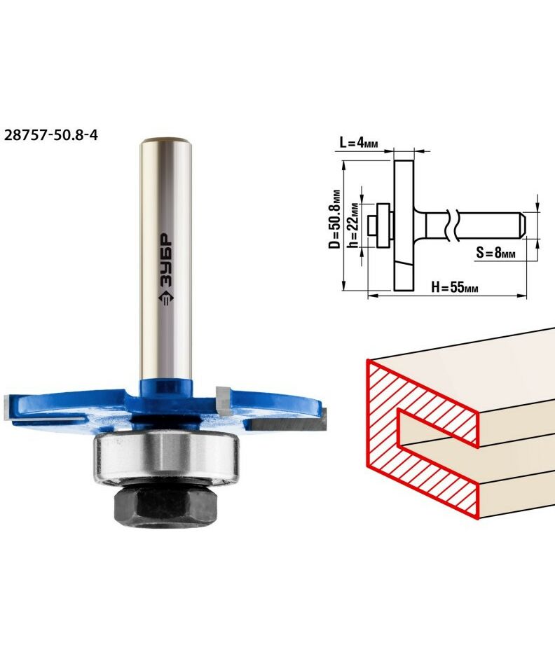 Фреза горизонтально-пазовая Зубр 50.8x4мм хвостовик 8мм [28757-50.8-4]