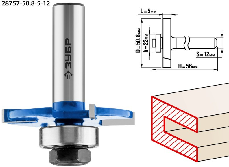 фреза горизонтально-пазовая Зубр 50.8x5мм хвостовик 12мм [28757-50.8-5-12]