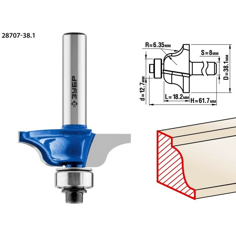 Фреза кромочная калевочная Зубр №6 38.1x18мм радиус 6.3мм [28707-38.1]