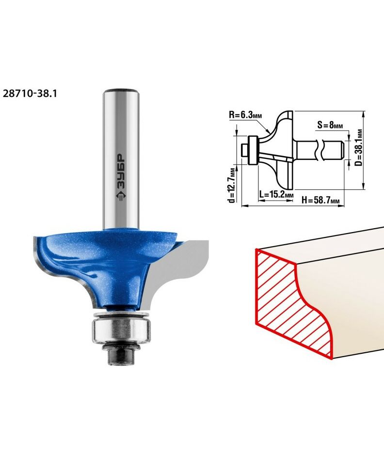 Фреза кромочная калевочная Зубр №8 38.1x15мм радиус 6.3мм [28710-38.1]