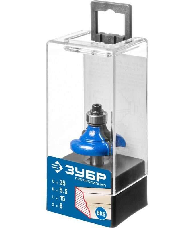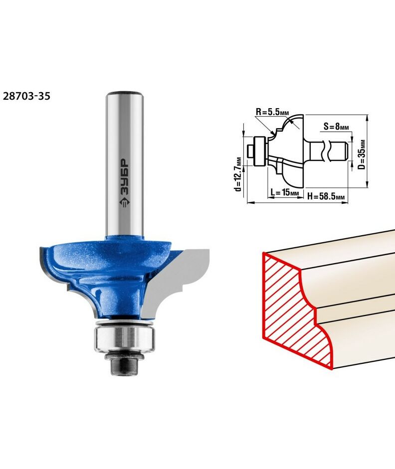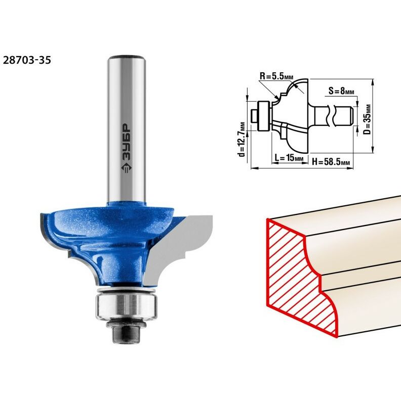 Кромочная калевочная фреза Зубр Профессионал №3 35x17 мм радиус 5.5 мм [28703-35]
