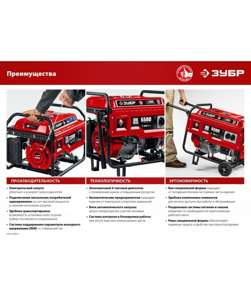 - Облегчает эксплуатацию генераторов ЗУБР благодаря удобному хвату и легкому движению в любом необходимом направлении