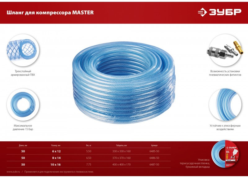 Воздушный шланг Зубр 6487-50 50 м, 10х16 мм