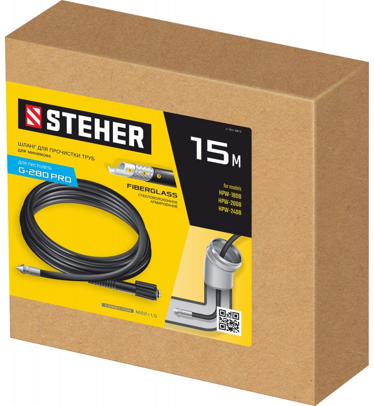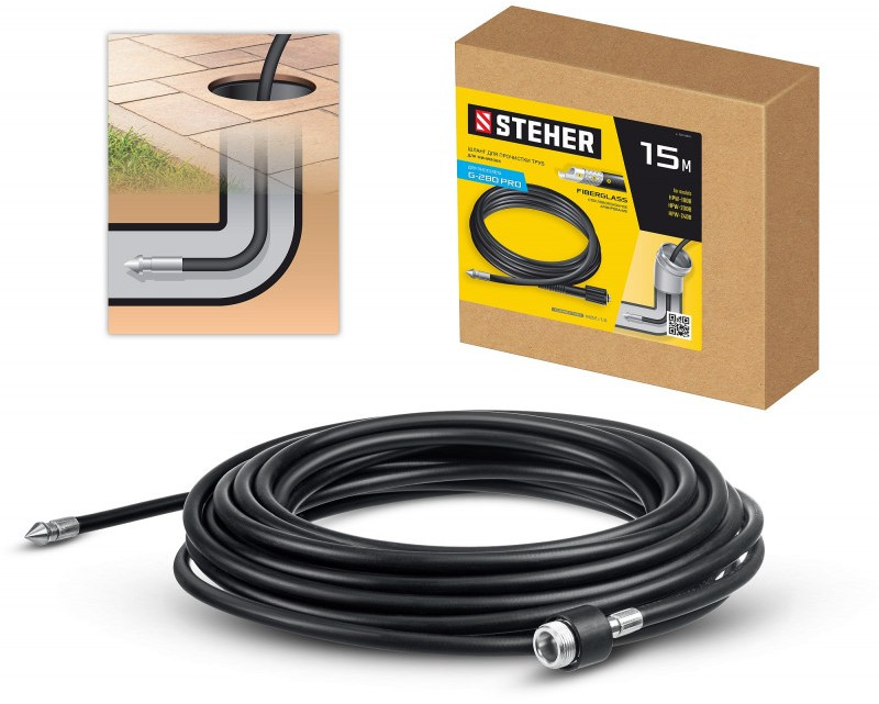 Шланг для прочистки труб STEHER 75414-280-15 для пистолета G-280 PRO, 15 м
