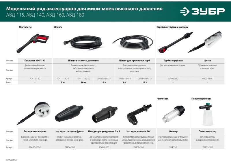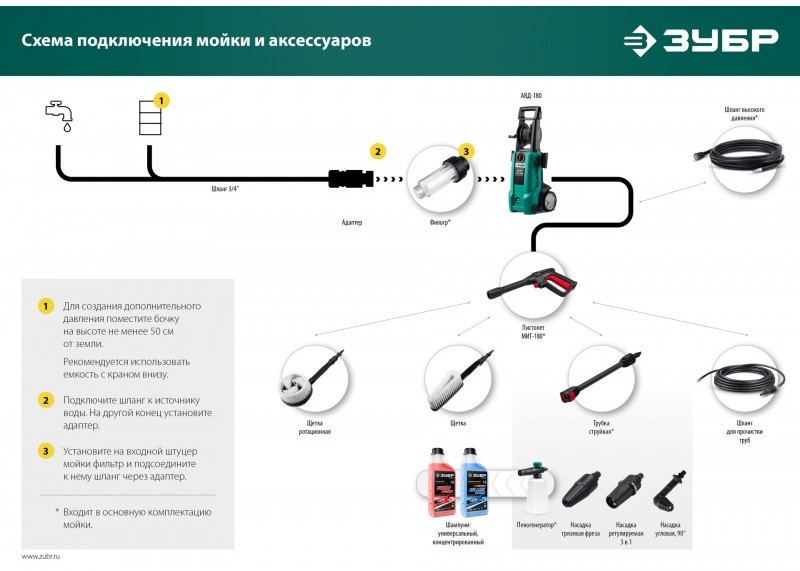 Качественные комплектующие для расширения функциональности моек ЗУБР