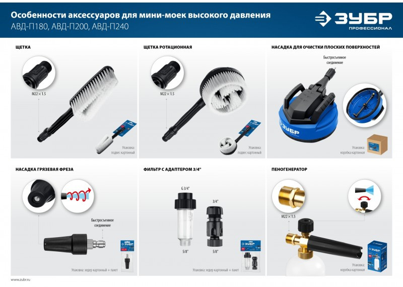 Качественные комплектующие для расширения функциональности моек ЗУБР
