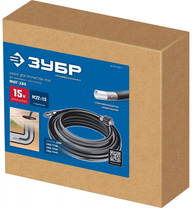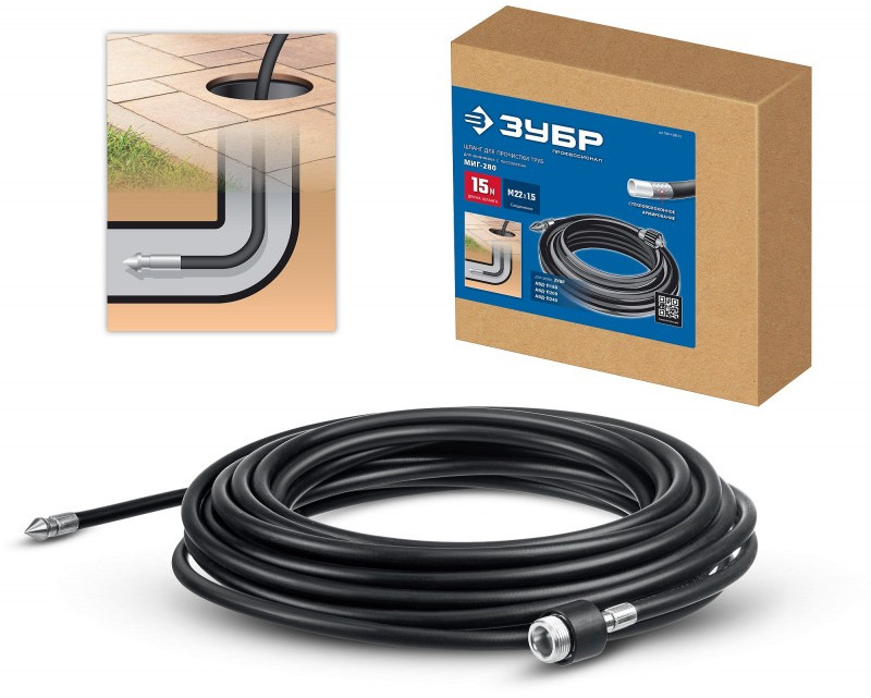 Шланг для прочистки труб Зубр 70414-280-15 для пистолета МИГ-280, 15 м