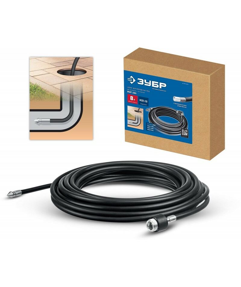 Шланг для прочистки труб Зубр 8 м для пистолета МИГ-280 [70414-280-8]