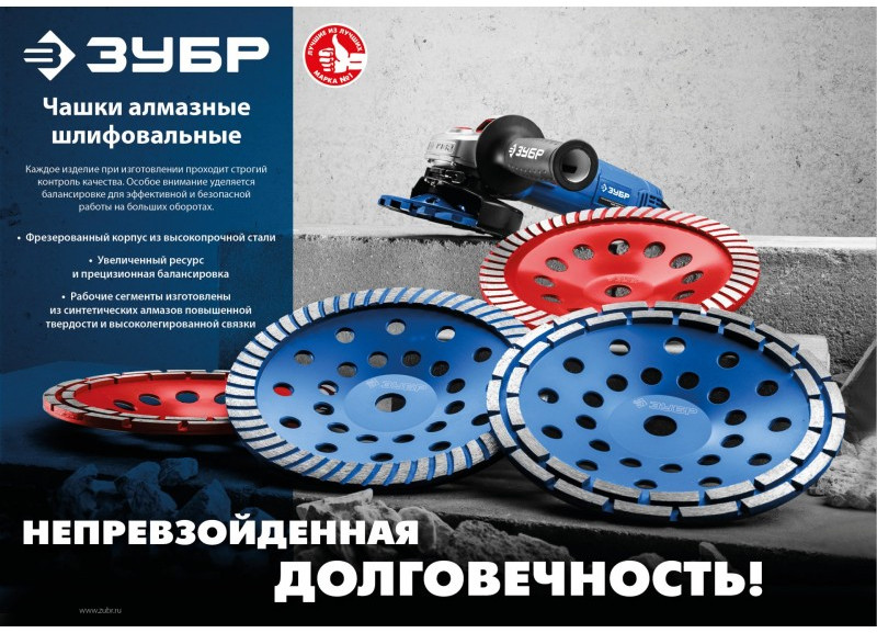 - Два ряда алмазных сегментов для равномерного шлифования и большого объема работ.