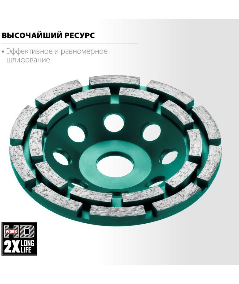 - Два ряда алмазных сегментов для равномерного шлифования и большого объема работ.