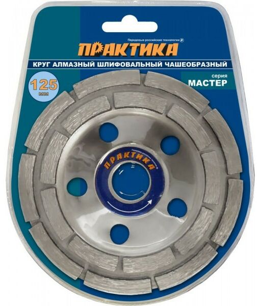Чашка алмазная Практика 779-608 шлифовальная, "Мастер", 2-ряда, 125 х 22 мм, блистер