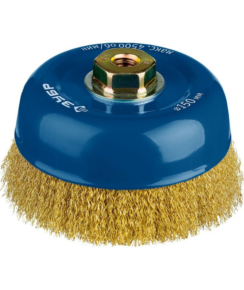 Щетка чашечная для УШМ Зубр Профессионал 150ммхМ14 витая латунированная стальная проволока 0,3мм [3526-150_z02]