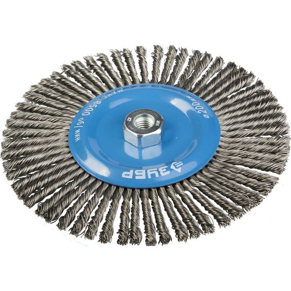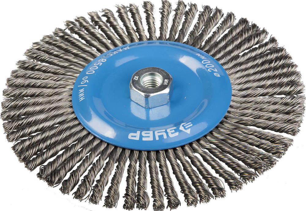 Щетка дисковая для УШМ Зубр ЭКСПЕРТ 200мм х М14 плетеные пучки стальной проволоки 0.5мм [35192-200_z01]