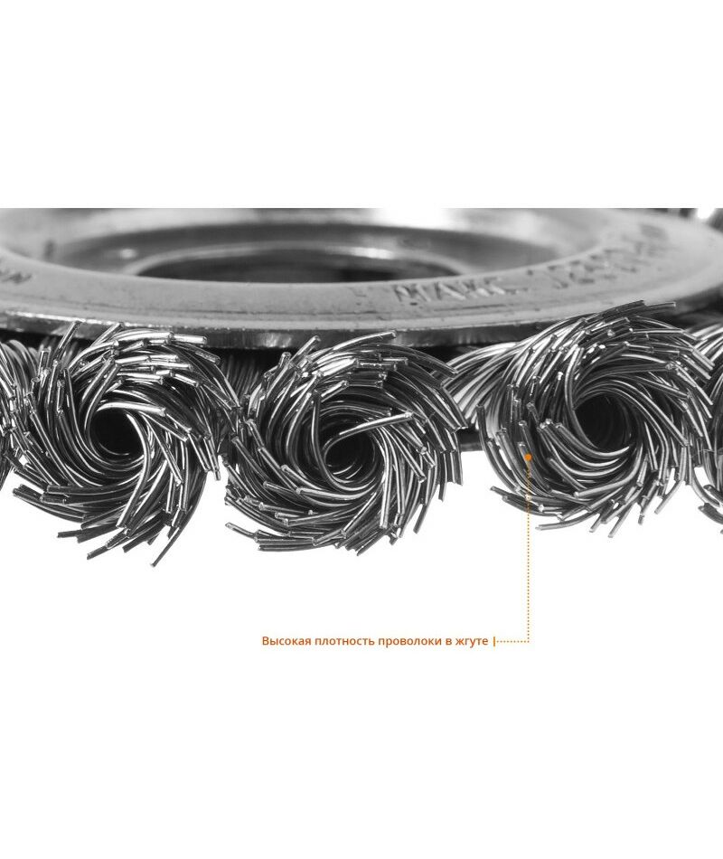 - Повышенный ресурс щетки благодаря еще более высокой жесткости сплетенного пучка и увеличенной толщине проволоки