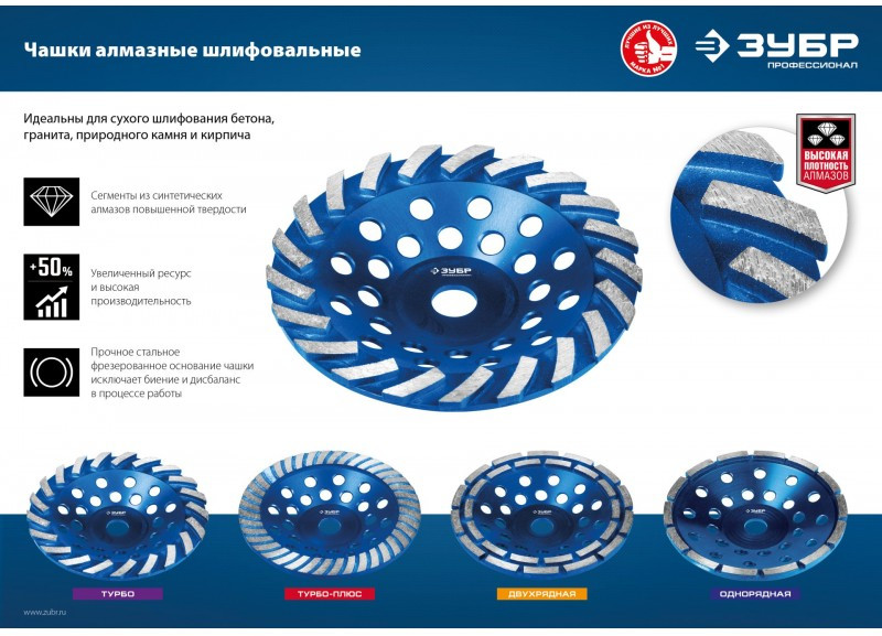 Сегментная алмазная чашка Зубр Профессионал Турбо d 180 мм [33370-180]