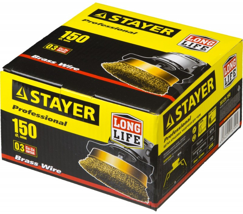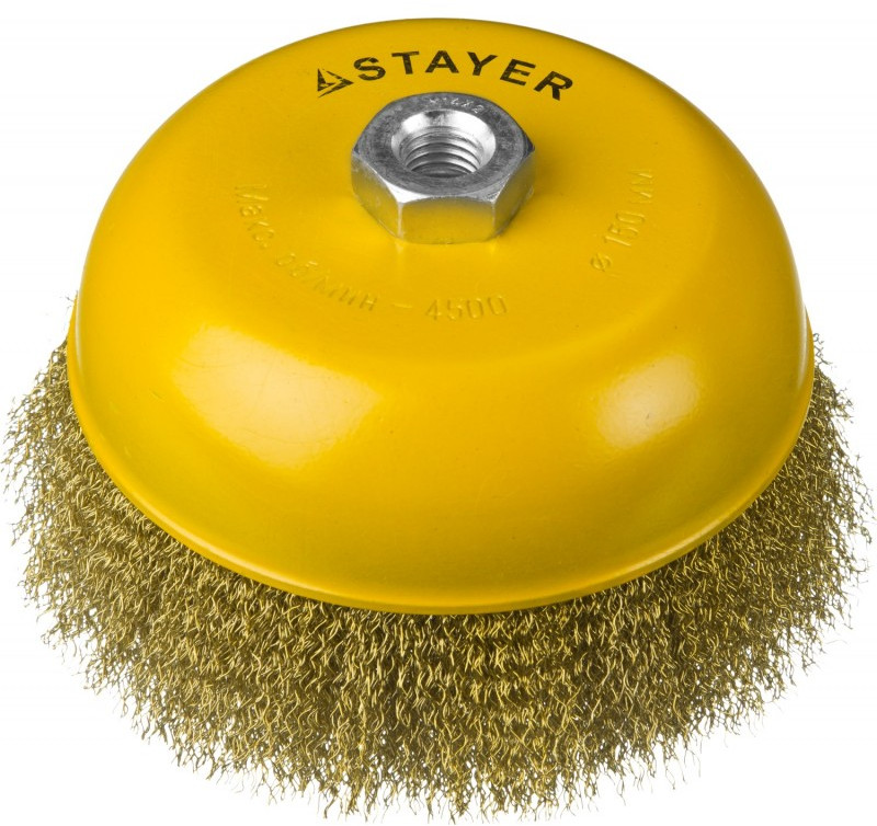 Щетка чашечная STAYER PROFESSIONAL 150 мм витая латунированная стальная проволока, 0.3 мм [35125-150]