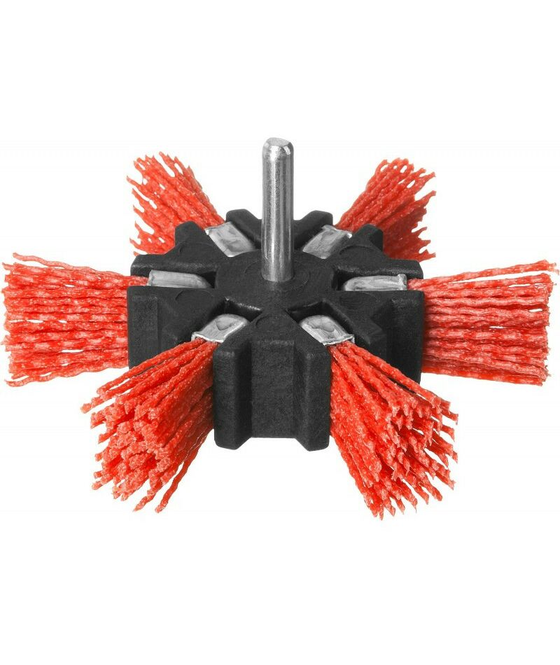 Применяется с дрелью для удаления заусенцев, въевшейся грязи и шлифовки поверхностей изделий из пластика, древесины, стали и цветных металлов.