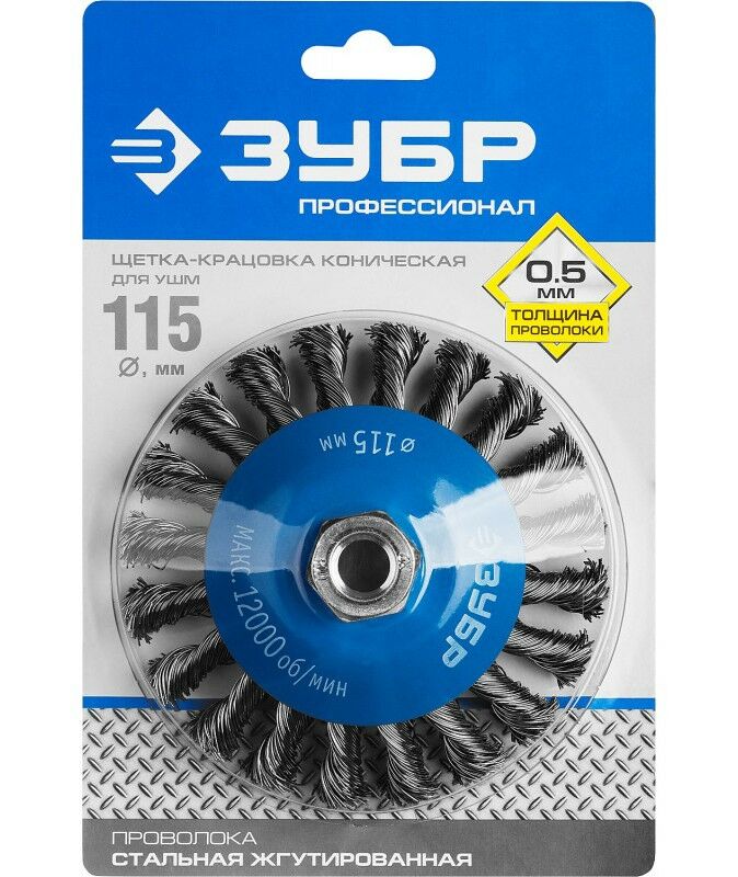 Щетка коническая Зубр Профессионал 115 мм стальная проволока, 0.5 мм [35269-115]