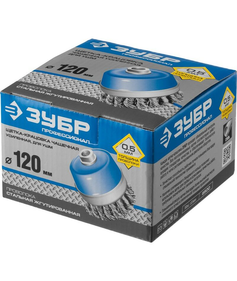 Щетка чашечная усиленная Зубр Профессионал 120мм М14 жгутированная стальная проволока, 0.5 мм [3527-120_z02]