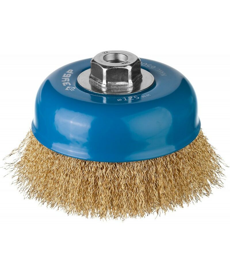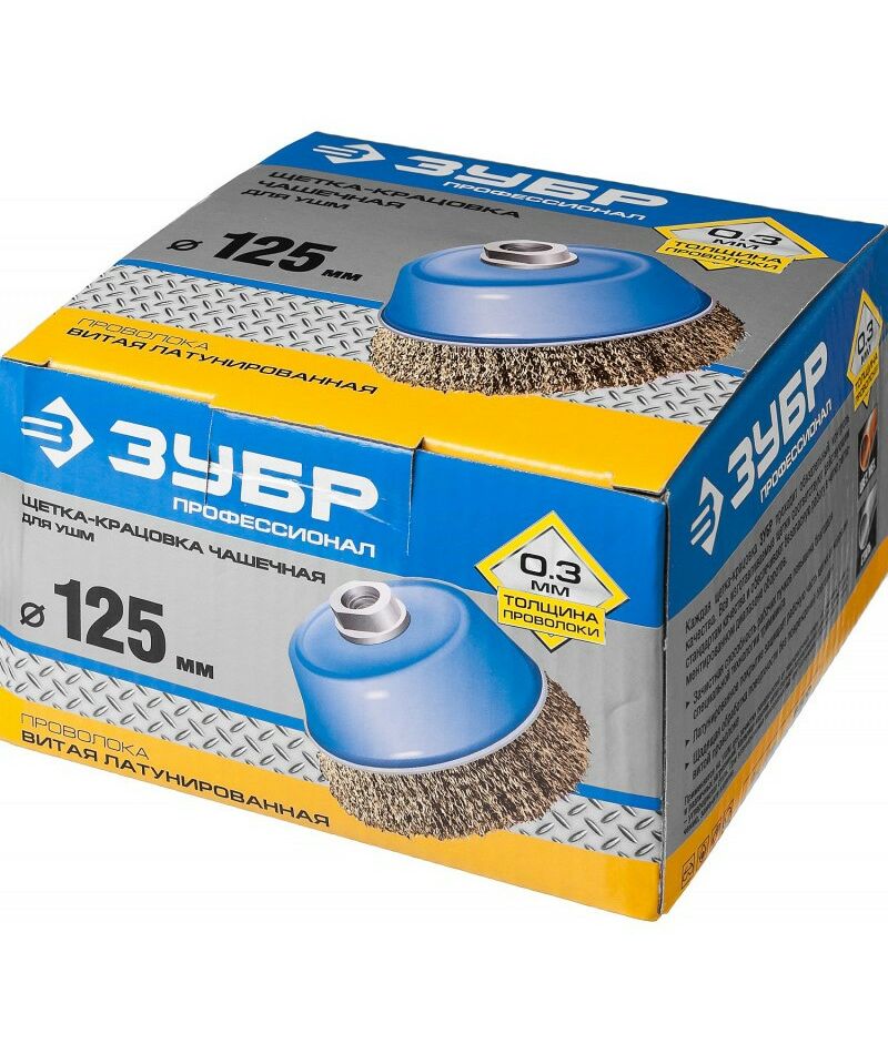 Щетка чашечная Зубр Профессионал 125 мм витая латунированная стальная проволока, 0.3 мм [3526-125]