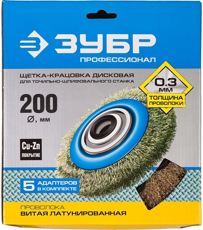 Щетка дисковая Зубр Профессионал 200 мм витая стальная латунированная проволока, 0.3 мм [35186-200_z01]