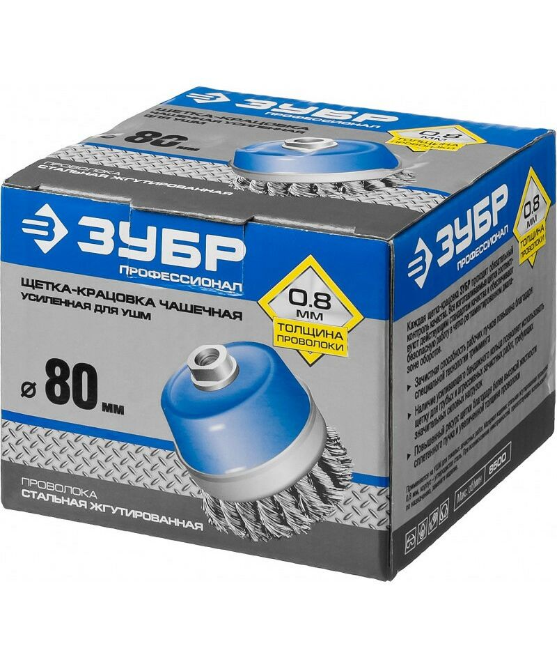 Щетка чашечная Зубр Профессионал 80 мм стальная проволока, 0.8 мм [35271-080]