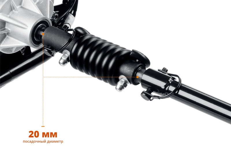 - Пружинный адаптер ЗУБР смягчает удары, передающиеся от шнека к редуктору мотобура при попадании шнека на камень или другую твердую поверхность. Таким образом, приспособление продлевает ресурс редуктора мотобура и снижает уровень травматизма