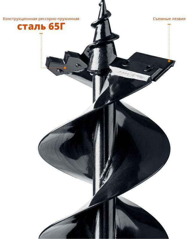 - Шнек для мерзлого грунта используется совместно с мотобурами ЗУБР. Представляет собой инструмент винтовой конструкции с двумя режущими элементами, выполненным из высокопрочной стали. При помощи шнека можно бурить в мерзлом грунте скважины диаметром 150 мм.