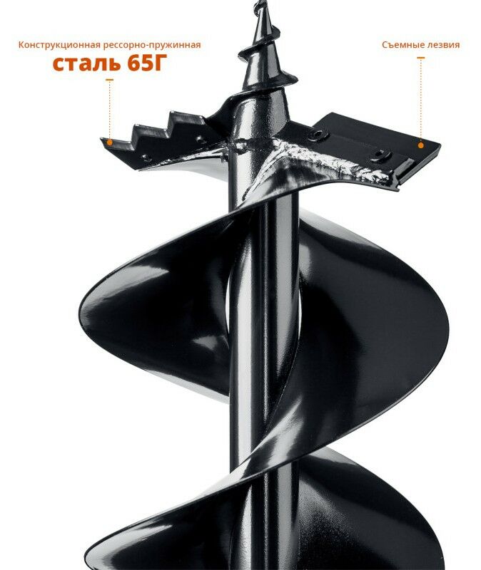 - Шнек для мерзлого грунта используется совместно с мотобурами ЗУБР. Представляет собой инструмент винтовой конструкции с двумя режущими элементами, выполненным из высокопрочной стали. При помощи шнека можно бурить в мерзлом грунте скважины диаметром 200 мм.
