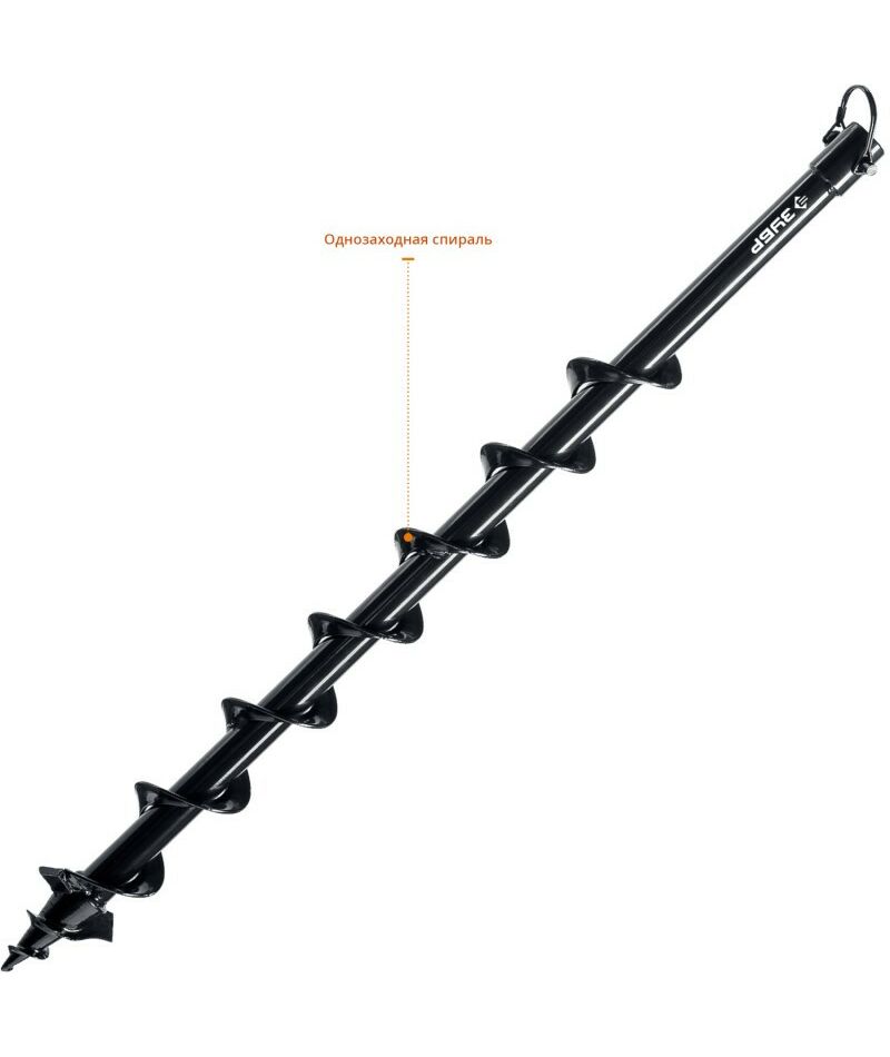 Шнек является сменным элементом для мотобуров ЗУБР. Он представляет собой винтообразный бур, который широко применяют для бурения скважин бытового назначения. Например, с его помощью можно бурить скважины для установки столбов. Благодаря винтовой форме шнек быстро проникает сквозь грунт и выбрасывает его наверх.