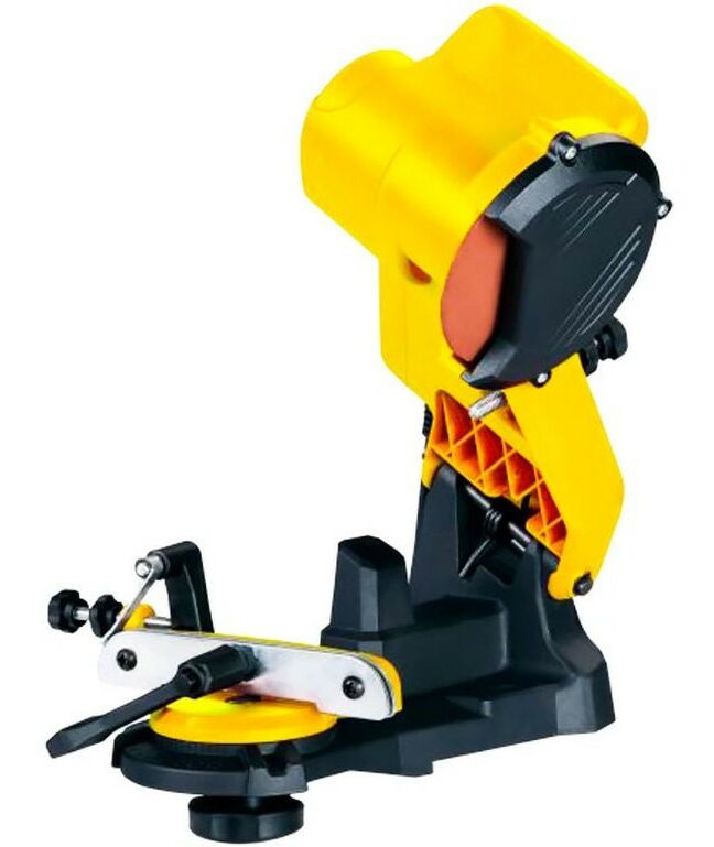 - Есть удобный зажим, повышающий скорость заточки цепи