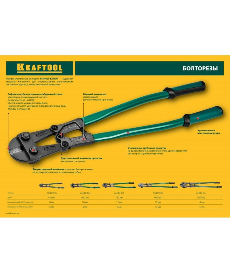 - Профессиональный болторез Kraftool серии KAYMAN надежный инструмент для перекусывания металлических и стальных прутков, в том числе закаленных